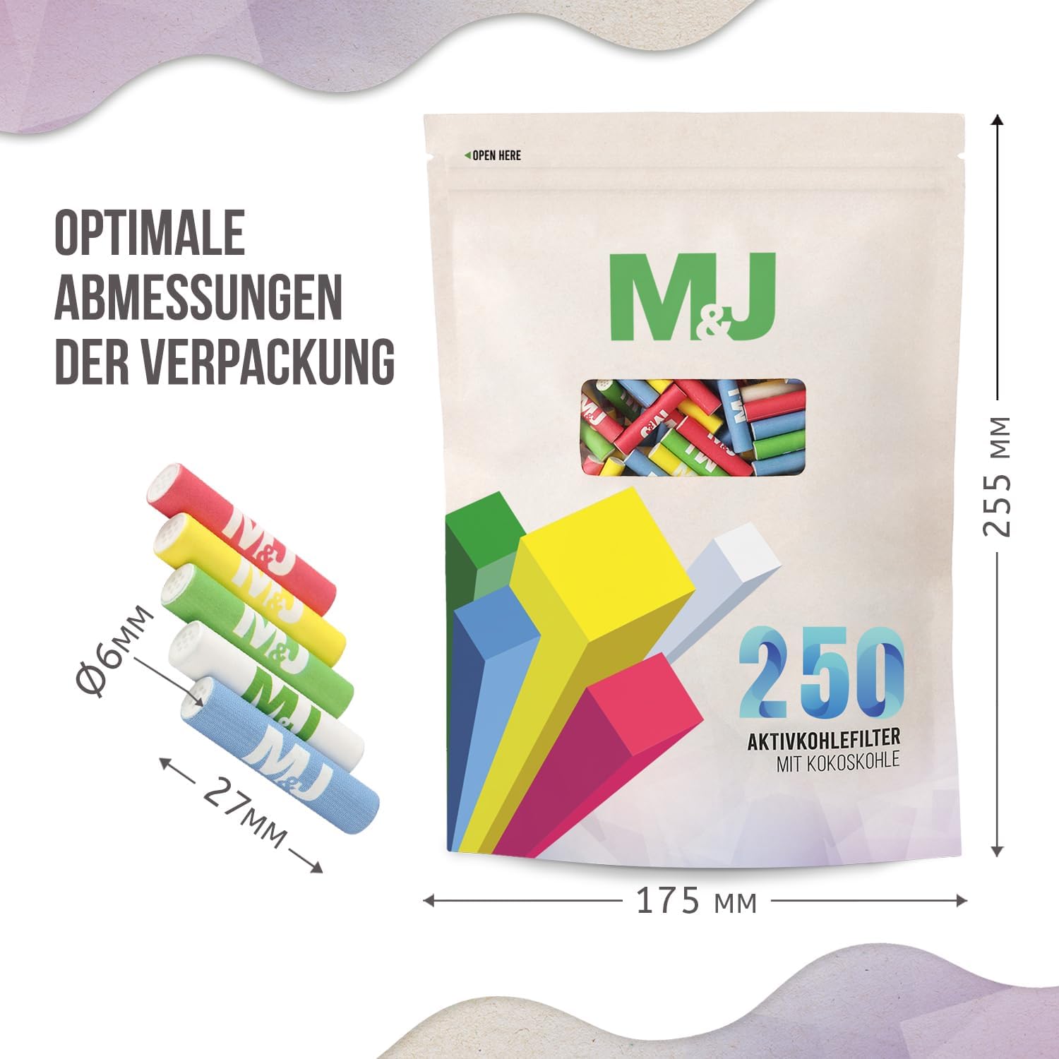 - 📦PRAKTISCHE VERPACKUNG: Die 250 bunten Slim Aktivkohlefilter 6 mm kommen in einem wiederverschließbaren Beutel und sind perfekt geeignet für Selbstgedrehte – Rauchen Zubehör und ready to use
