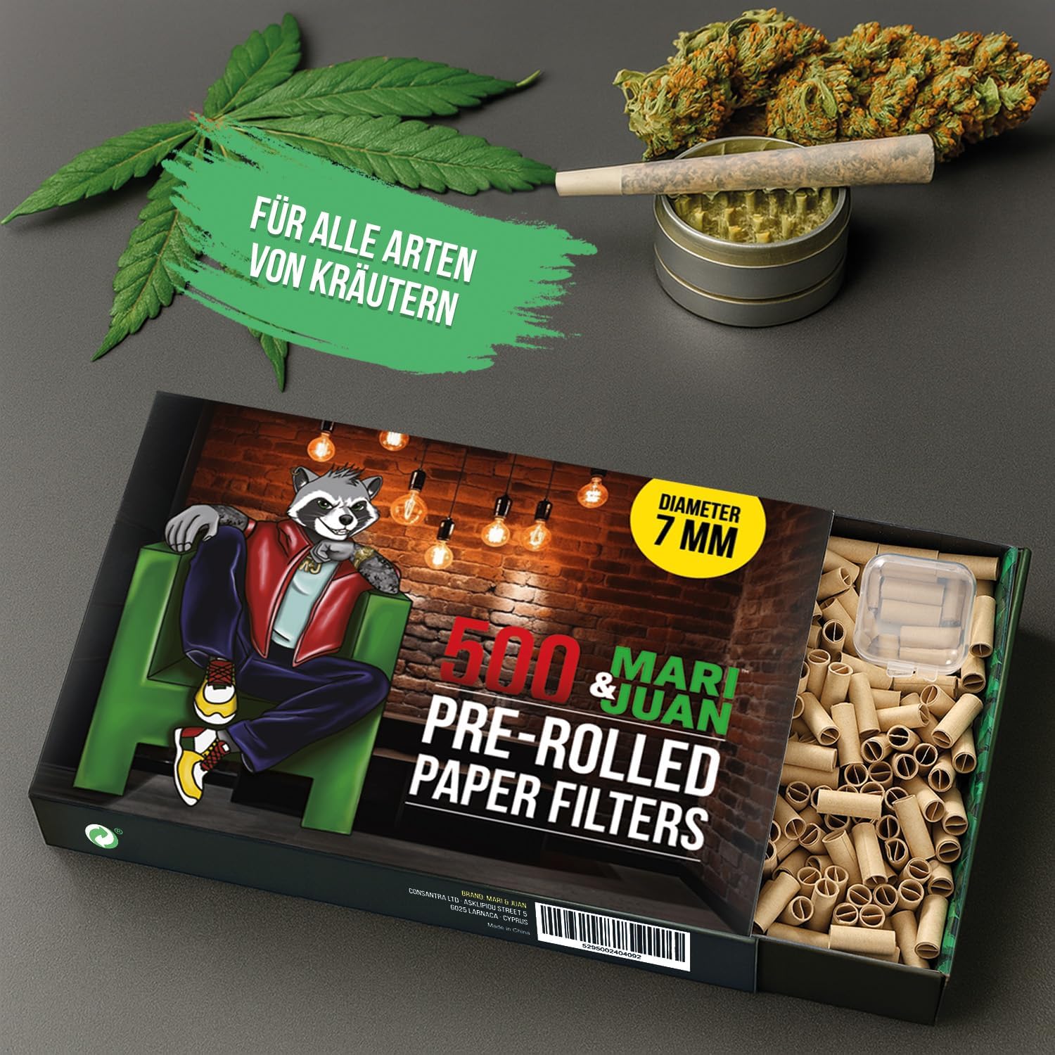 Mari&Juan vorgedrehte Filterspitzen bieten dir die perfekte Lösung für ein stressfreies Erlebnis. In einer praktischen Verpackung findest du 500 Filterspitzen aus ungebleichtem Pflanzenfaserpapier. Mit einem Durchmesser von 7mm eignen sie sich perfekt für das Drehen. Die braunen Filter tips sind zu 100 % aus natürlichen Materialien hergestellt und frei von chemischen Zusätzen, sodass du ein reines Erlebnis genießen kannst. Egal ob du Anfänger oder erfahrener bist, diese Filterspitzen sind die ideale Wahl. Dank des vorgedrehten Designs musst du dir keine Gedanken mehr über das eigenhändige Rollen machen – einfach aus der Box nehmen, einfügen und loslegen. Das spart nicht nur Zeit, sondern sorgt auch für einen gleichmäßigen Luftstrom, der es sanfter und angenehmer macht. Durch die Verwendung von umweltfreundlichen, ungebleichten Materialien trägst du gleichzeitig zu einem nachhaltigeren Konsum bei – für alle, die nicht nur auf ihren Genuss, sondern auch auf die Umwelt achten. Die kompakte Box mit 500 pre rolled tips passt bequem in jede Tasche, sodass du immer und überall griffbereit bist. Die 7mm Filter bieten dir die optimale Größe, um deine perfekte Mischung zu ergänzen. Die braunen Papierfilter sind für alle geeignet, die einen natürlichen Look bevorzugen, und durch das weiche Papier bleibt der Filter angenehm im Mund. Mit den vorgedrehte Filter von Mari & Juan wirds nicht nur einfacher, sondern auch genussvoller und umweltfreundlicher. Bestelle jetzt und erlebe den Unterschied! 🌿